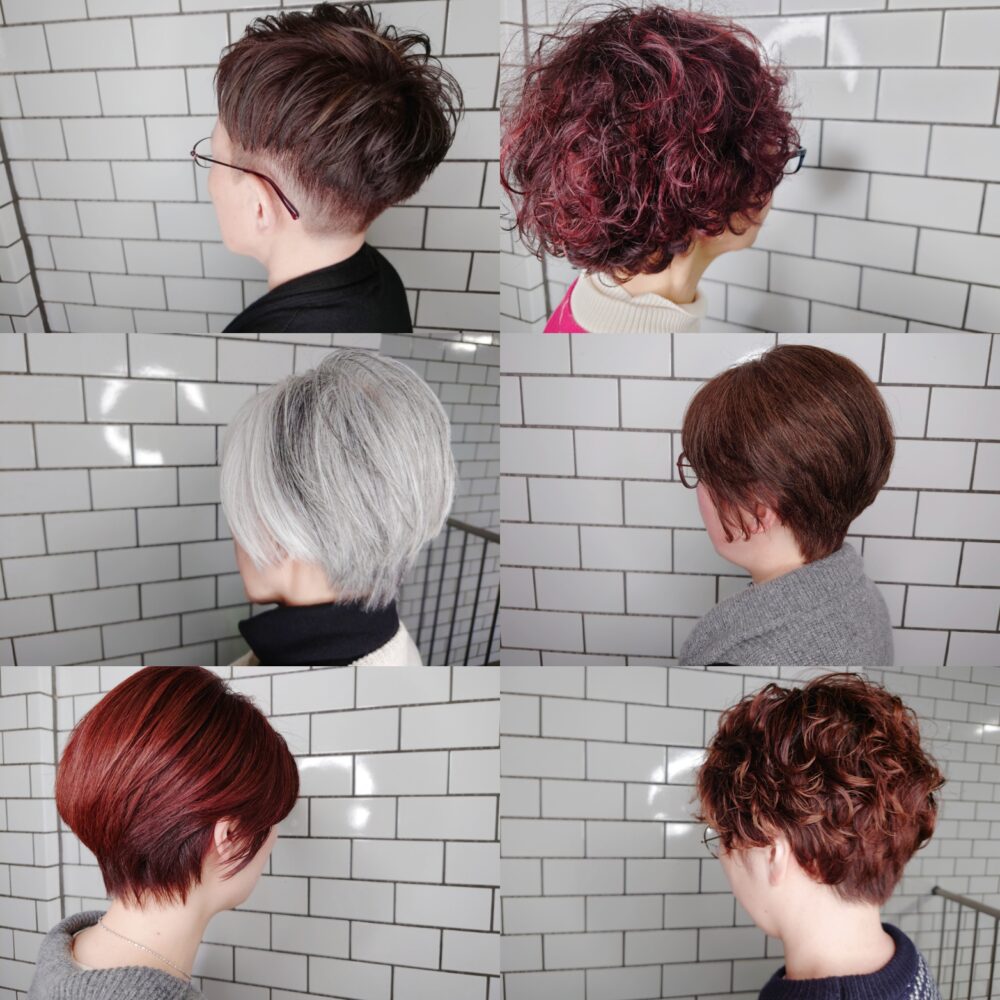 カラー、刈り上げ、ハイライト、パーマにグレイヘア